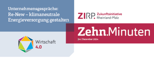 Wie unsere Unternehmen Klimaschutz vorantreiben und gleichzeitig wirtschaftlich stark sein können, hat die Zukunftsinitiative Rheinland-Pfalz (ZIRP) e.V. gemeinsam mit dem Umwelt-Campus Birkenfeld der Hochschule Trier in insgesamt sieben Veranstaltungen aufgezeigt. In unserer Abschlussveranstaltung zum Thema ‚Re-new‘ werfen wir einen Blick auf innovative Konzepte zur klimaneutralen Energieversorgung und auch darauf, welche Rolle Wasserstoff dabei spielen kann.