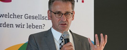 „Wir müssen uns jetzt überlegen, in welchem Land wir leben wollen“, machte Prof. Dr. Marina Münkler, Mitautorin des Buches „Die neuen Deutschen – ein Land vor seiner Zukunft“ in ihrem Impulsvortrag deutlich. „Viele glauben, dass sich nichts ändern muss, damit alles so bleibt, wie es ist. Das ist ein Irrtum.“ Zentral, besonders im Hinblick auf Zuflucht und Zuwanderung, sei dabei die Frage nach der Aufnahmebereitschaft der deutschen Gesellschaft. „Neben der Frage, was man den Migranten zutraut, steht damit auch die Frage im Mittelpunkt, was die deutsche Gesellschaft sich selbst zutraut und ob sie in der Lage ist zu integrieren.“ Gesellschaftliche Integration, so Münkler, sei ein wechselseitiger Prozess bei dem die Integrationsanstrengungen der Hierhergekommenen der Aufnahmebereitschaft unserer Gesellschaft entsprechen müssten.