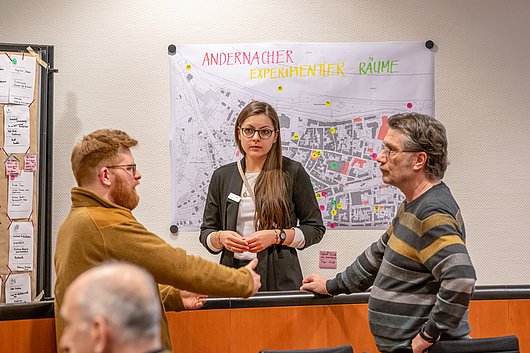 Am 12. März 2024 diskutierten interessierte Unternehmende der Kultur- und Kreativwirtschaft, Ratsvertreterinnen und -vertreter, Beiräte und Initiativen Visionen für die Kreative Innenstadt Andernach 2040.