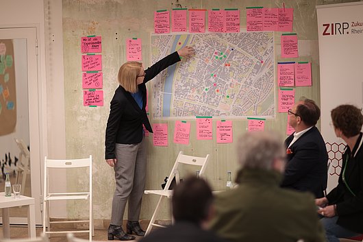 Rund 50 Personen nutzten die Gelegenheit, ihre Visionen und Anliegen im Rahmen eines ganztägigen Workshoptags zu platzieren. Bei einer abendlichen Podiumsdiskussion mit Innenstadtdezernent Ralf Britten, Professorin Dorit Schumann (Präsidentin der Hochschule Trier), Sophie Dannielle Lorenz Vertreterin der Initiative Part aus Mainz sowie ZIRP-Geschäftsführerin Heike Arend wurden die Ergebnisse des Tages zusammengefasst und erste Schritte für die Umsetzung festgelegt.