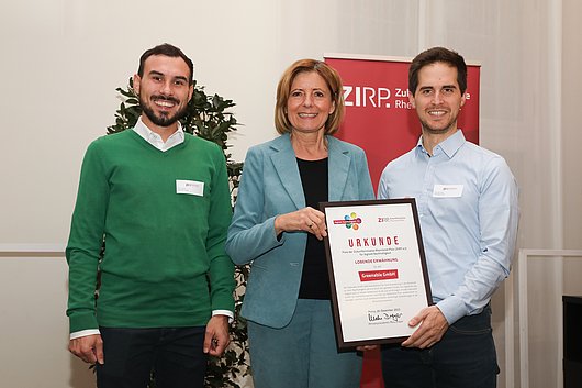 Seit 2021 vergibt die Zukunftsinitiative Rheinland-Pfalz (ZIRP) e.V den Preis „Zukunftsunternehmen“ für digital nachhaltiges Unternehmertum in Rheinland-Pfalz. Bewerben konnten sich Unternehmen jeglicher Größe und Branche mit Sitz oder Niederlassung in Rheinland-Pfalz, die in Bezug auf eine oder mehrere der in der Ausschreibung definierten Kategorien bemerkenswerte Strategien oder Projekte entwickelt haben und die im Sinne von good practice Anregungen für andere Unternehmen sein können.