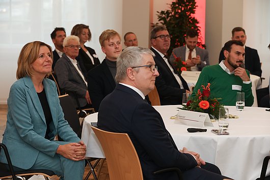 Die zweite lobende Erwähnung galt der Greenable GmbH, die 2022 gegründet wurde und sich bereits als sehr innovativ ausgezeichnet hat. Das Unternehmen ist ein Spin-Off der Smart Factory, des DFKI und der RPTU in Kaiserslautern, welches durch Softwareinnovation nachhaltige Veränderungen in der Wirtschaft vorantreibt. Es steht damit exemplarisch für Nachhaltigkeit, die durch Digitalisierung gefördert wird, wenn zum Beispiel wie in diesem Fall eine Software den spezifischen CO2-Abdruck eines Produktes ermittelt.