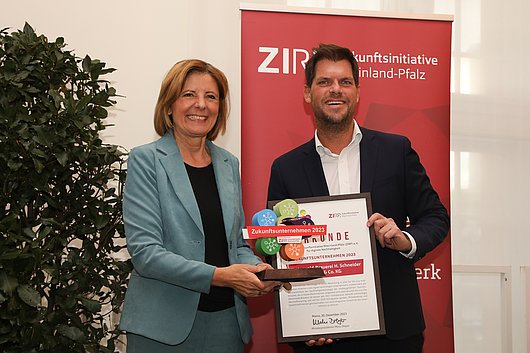 Die Zukunftsinitiative Rheinland-Pfalz (ZIRP) e.V. hatte zum sechsten Mal Unternehmen aus Rheinland-Pfalz aufgerufen, sich um den Titel „Zukunftsunternehmen 2023“ zu bewerben. Mit dieser Auszeichnung würdigt die ZIRP Unternehmen in Rheinland-Pfalz, die ihre Digitalisierungsstrategie mit den Werten der Nachhaltigkeit verbinden. Sie dient dazu, vorbildliches Engagement der Unternehmen anzuerkennen und landesweit sichtbar zu machen.