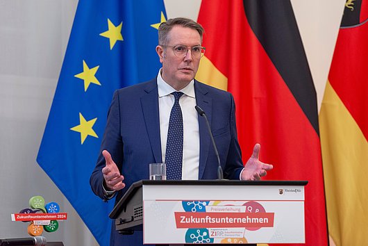 Bei einer feierlichen Preisverleihung mit mehr als 100 Gästen übergab Ministerpräsident Alexander Schweitzer, Stellvertretender Vorsitzender der ZIRP, den Preis am heutigen Abend im Festsaal der Staatskanzlei an das Siegerunternehmen. Der Ministerpräsident zeigte sich sehr erfreut, dass die unabhängige Jury mit der Zahnen Technik GmbH ein zukunftsgewandtes und zugleich traditionsreiches rheinland-pfälzisches Unternehmen als „Zukunftsunternehmen 2024“ ausgewählt hat, das die kostbare Ressource Wasser mit modernster Technologie für alle Menschen zugänglich machen will.