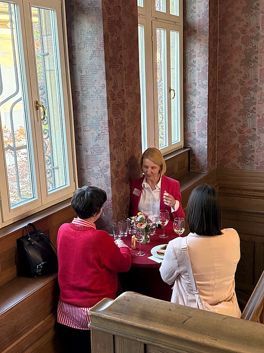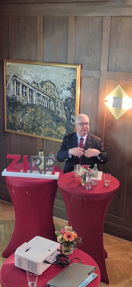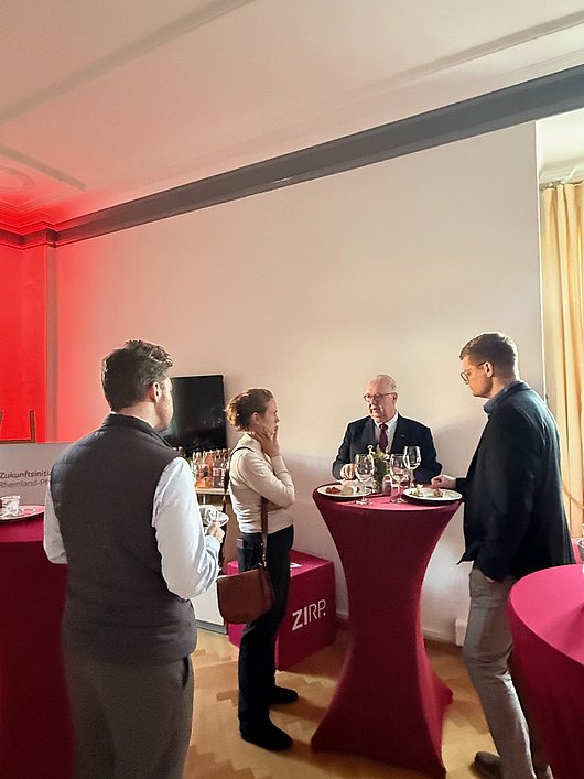 Wie gelingt gute Führung und was können Führungskräfte voneinander lernen? Diese Fragen standen bei der zweiten Ausgabe von Wein in der Villa im Fokus. Sechs Führungskräfte von ZIRP-Mitgliedsunternehmen standen Rede und Antwort und gaben Einblicke in ganz unterschiedliche Führungsperspektiven. In Kurzpitches stellten die Impulsgebenden ihre Sicht auf Führung vor, die im Anschluss in kleineren Runden bei einer “Human Library” vertieft wurden. Rund 25 junge Führungskräfte kamen so untereinander und mit unseren Impulsgebenden ins Gespräch über gute Führung.