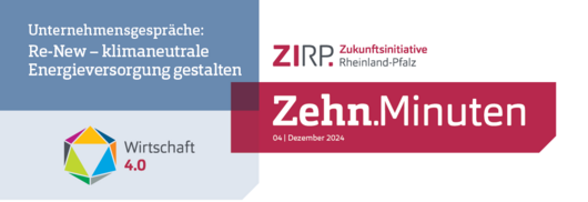 Wie unsere Unternehmen Klimaschutz vorantreiben und gleichzeitig wirtschaftlich stark sein können, hat die Zukunftsinitiative Rheinland-Pfalz (ZIRP) e.V. gemeinsam mit dem Umwelt-Campus Birkenfeld der Hochschule Trier in insgesamt sieben Veranstaltungen aufgezeigt. In unserer Abschlussveranstaltung zum Thema ‚Re-new‘ werfen wir einen Blick auf innovative Konzepte zur klimaneutralen Energieversorgung und auch darauf, welche Rolle Wasserstoff dabei spielen kann.