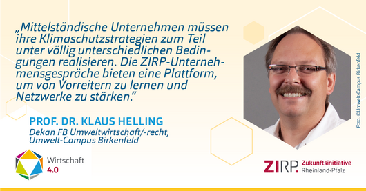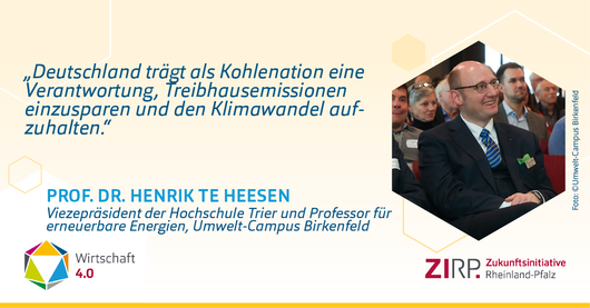 Die Notwendigkeit zur Klimawende ist breiter Konsens in Politik, Wirtschaft und Gesellschaft. Unternehmen haben sich auf den Weg gemacht, Klimaneutralität zu erreichen und entsprechende Strategien aufgesetzt. Die geopolitischen Risiken geben der klimainduzierten Transformation unserer Energieversorgung und Wirtschaft eine weitere Dynamik. Von der Industrie bis zum Handwerk ist die Wirtschaft gefordert, Produkte und Verfahren umzustellen und angesichts des Klimawandels und der zu gestaltenden Versorgungssicherheit neue Wege zu finden. Zukunftsfähiges Entscheiden ist gefragt; innovative klimaschonende Verfahren müssen gefunden, klimaneutrale Geschäftsmodelle und Produkte entwickelt werden. Partner der Unternehmensgespräche der ZIRP ist der Umwelt-Campus Birkenfeld der Hochschule Trier, der einzigartigen „Zero Emission University“, die neben einem ökologischen Baukonzept über eine CO2-neutrale Energie- und Wärmeversorgung und modernste Gebäude- und Anlagentechnik verfügt.